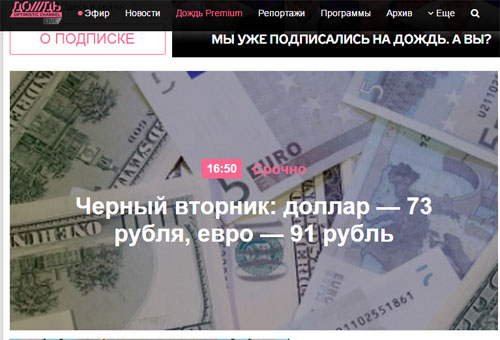 Телеканал «Дождь» окрестил происходящее Черным Вторником. И дал хронику падения рубля буквально по часам.