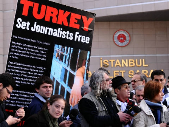 Он упомянул недавний судебный процесс против 4 журналистов, обвиняемых в разглашении государственной тайны. Двоим журналистам газеты Cumhuriyet и двоим их коллегам из газеты Aydinlik грозит 10 лет заключения. Оба издания проигнорировали запрет правительства и сообщили о содержании прослушанной тайной беседы высокопоставленных членов правительства. На встрече речь шла о возможной военной интервенции Турции в Сирию.