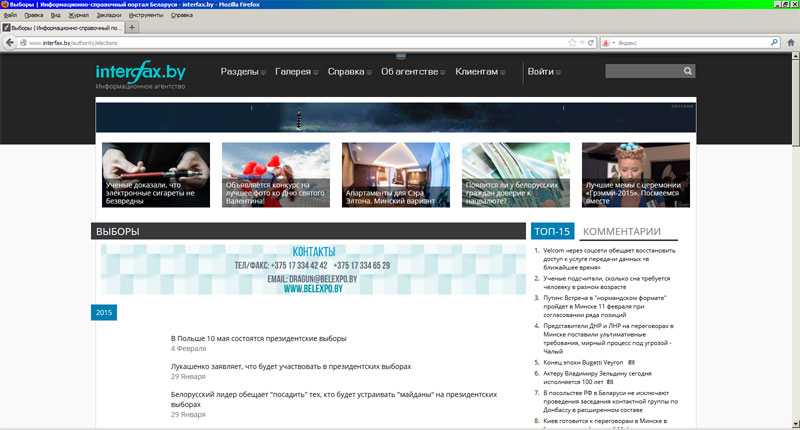 Тематический раздел, посвященный выборам, есть и у белорусского информагентства «Интерфакс-Запад». Чтобы его найти, нужно зайти в раздел «Власть» и прокрутить на пару экранов вниз. Информации там достаточно много, но она свалена в кучу – в хронологическом порядке, но тематически вперемешку идут выборы президента и парламента, выборы в Беларуси, в Польше и в Греции… Единственное структурирование – по годам. Однако использовать вполне можно: «Интерфакс» всегда был сильным источником новостей.