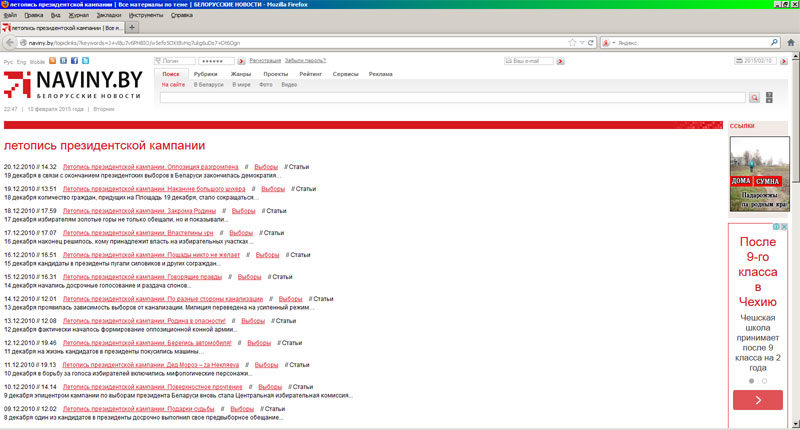 Проект информационного агентства БелаПАН. Все про выборы 2010 года. Это как раз тот случай, когда кому-то нужно покопаться в прошлом. Но я все же очень надеюсь, что БелаПАН скоро начнет вести и летопись президентской кампании 2015 года.