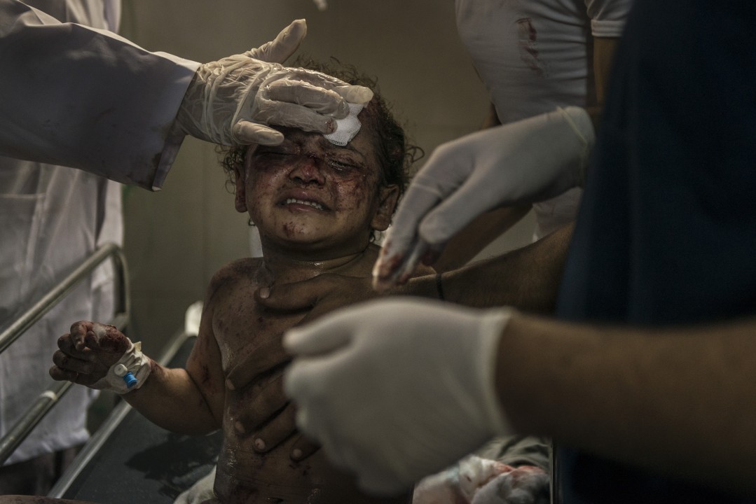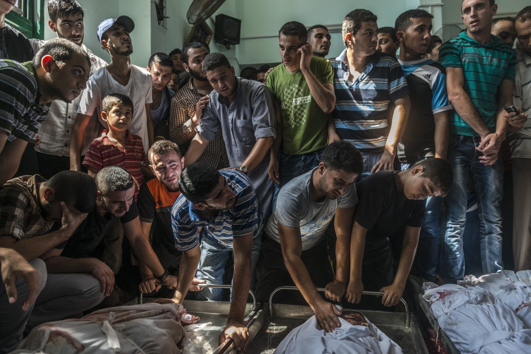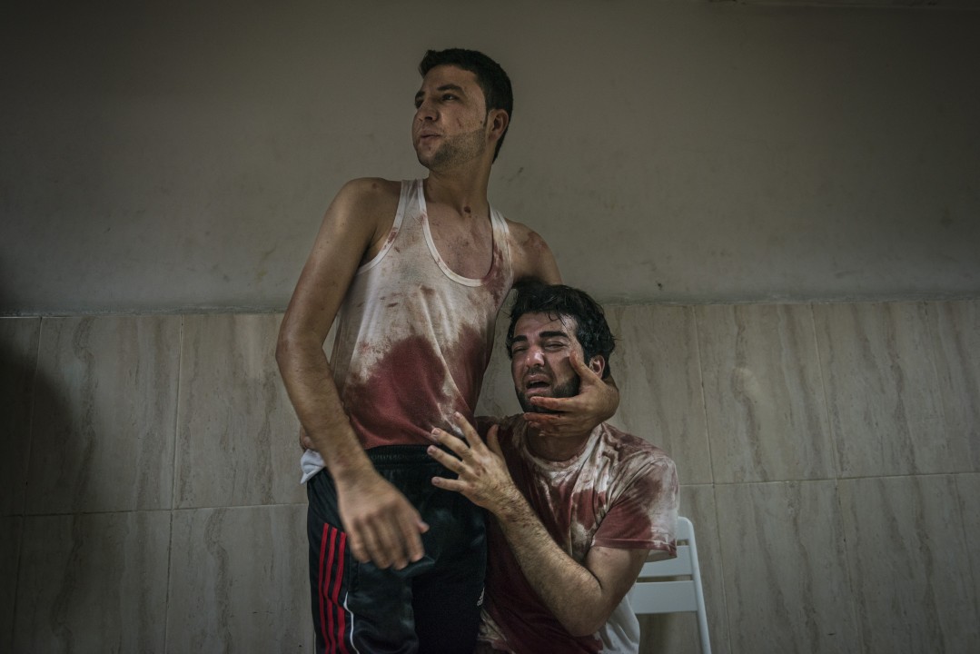 Это снято в городе Хан Юнис между Рафой и Газой. На фото два брата. У них тяжело ранили отца, и они приехали вместе с ним в больницу на машине скорой помощи. Позже он умер в палате. И вот они – братья, перемазанные в крови своего отца, оплакивают его.