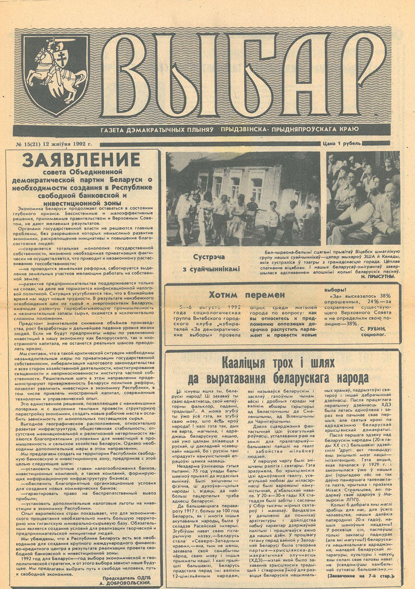 - У 1990 годзе, 1 кастрычніка, я атрымаў пасведчанне аб рэгістрацыі. Заснавальнікам быў Віцебскі гарадскі клуб выбаршчыкаў, які быў створаны 18 студзеня 1990 году. Але каб наладзіць выданне газеты, спатрэбіўся год. Дапамог, як ні дзіўна, путч 1991-га. Бо да таго не было нічога – ні паперы, ні памяшкання...