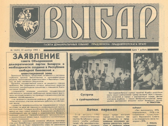 У розныя часы газета выдавалася з рознай якасцю – часам афіцыйна друкавалася ў дзяржаўных друкарнях, часам – падпольна рабілася на ксераксе. У маёй калекцыі – два нумары “Выбару”, № 15 (21) і № 16 (22) за 1992 года. На самой газеце пазначана: “Газета дэмакратычных плыняў прыдзвінска-прыдняпроўскага краю”. Мовы выдання – беларуская ды расейская, фармат А3. Наклад – 2500 асобнікаў, надрукавана ў Віцебскай узбуйнёнай друкарні ім. Камінтэрна. Цана – 1 рубель. Увогуле, у той час газета існавала цалкам афіцыйна, выходзіла па некалькі разоў на месяц. Афіцыйны заснавальнік – Віцебскі гарадскі клуб выбаршчыкаў “За дэмакратычныя выбары”.