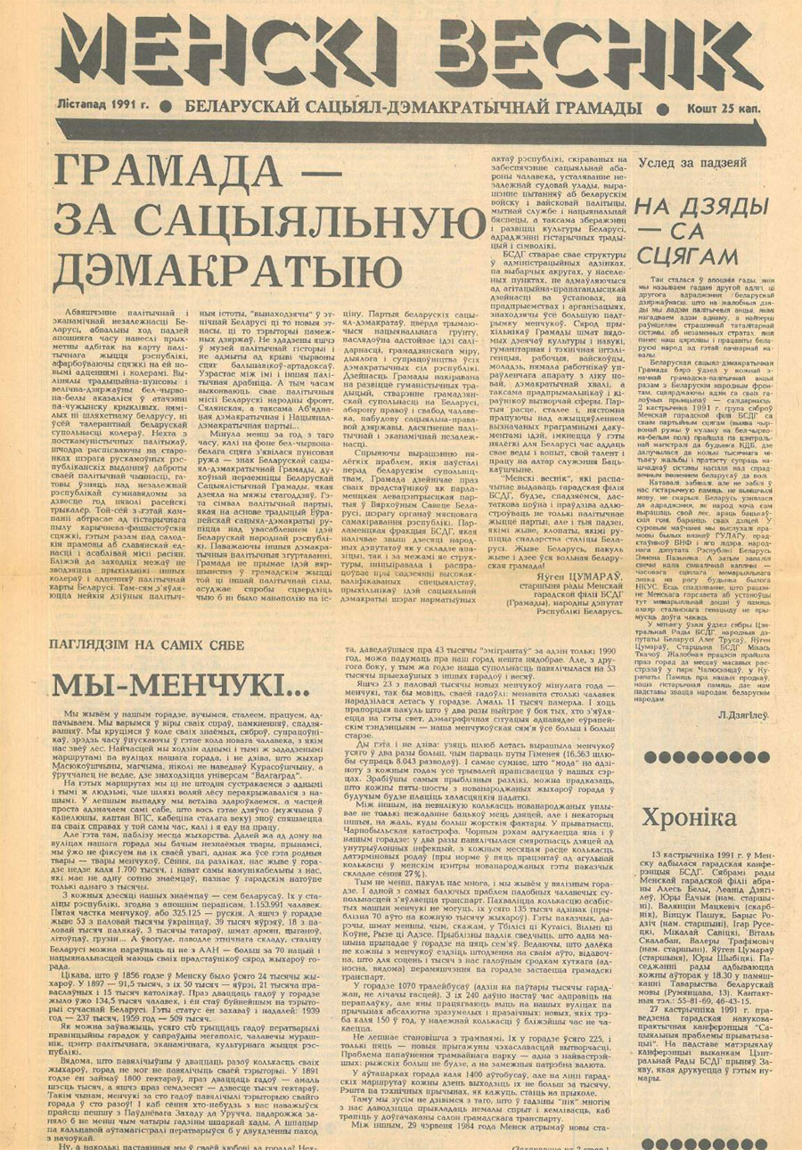 На жаль, нават ветэраны беларускай сацыял-дэмакратыі аказаліся не ў стане ўзгадаць што-небудзь канкрэтнае пра “Менскі веснік”. Хаця відавочна, што ў 1991-1992 гадах гэта было досыць уплывовае выданне. Але цяпер адзінае, што мне застаецца – распавесці пра саму газету.