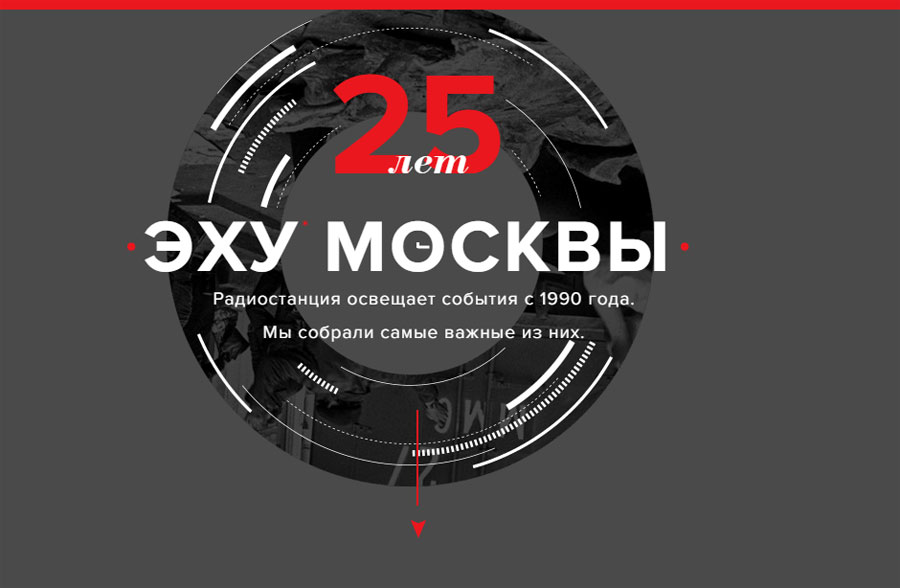 А вот лонгрид «25 лет Эху Москвы» - отличный пример того, как рассказывать истории своих и чужих компаний, событий и явлений. Такой интерактивный музей с возможностью отследить вехи истории, услышать голоса свидетелей, окунуться в эпоху.