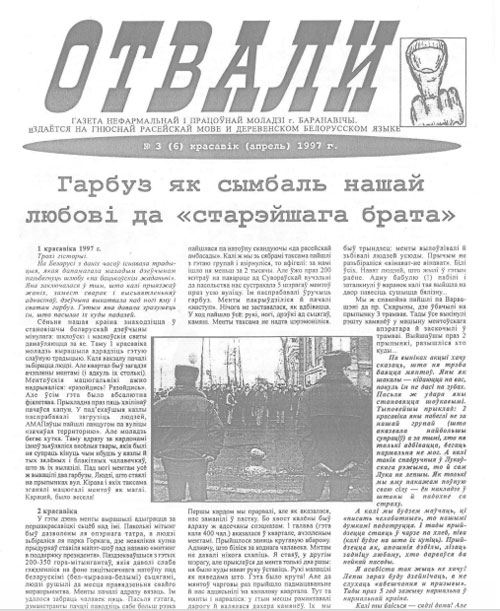 - Вось не паверыш, але за ўвесь час ані капейкі не патрацілі. Проста ў нашых аднадумцаў, нашых прыхільнікаў, былі магчымасці – у кагосці доступ да паперы, хтосці працаваў у міні-друкарні, у капіравальным цэнтры, нехта прафесійна займаўся вёрсткай часопісаў (працаваў у Менску), а ў вольны час рабіў наша выданне. Разумееш, калі людзі аб’яднаныя вакол ідэі, то рэалізоўваць праект можна практычна без грошай. Хаця, зразумела, толькі да пэўнай рысы.