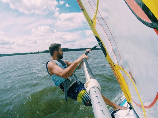 - У дзяцінстве я паспрабаваў велізарную колькасць відаў спорту. Тэніс, плаванне, стральба, футбол, валейбол, баскетбол. Усё ў пэўным сэнсе было на прафесійным ці амаль на прафесійным узроўні. Сёння я пакінуў сабе тры віды спорту. І ў кожным з іх жаданне толькі адно — стаць профі. Першы і самы галоўны ў маім жыцці — пляжны валейбол. Гэта запал. Ад яго я не пазбаўлюся ніколі. Аднойчы са сваімі партнёрамі ўвайшоў у 16 ??наймацнейшых каманд краіны! Другі спорт — рускі більярд. У любы час дня і ночы гатовы згуляць партыю. Штотыдзень гуляю турніры ў більярдавым клубе “Еўропа”. Кажуць більярд — гэта шахматы ў руху. У пэўным сэнсе я з гэтым сцвярджэннем згодны. І трэці спорт — той, дзеля якога я кожны дзень адкрываю сайт windguru.by - менавіта там знаходзіцца інфармацыя з метэастанцыі на Мінскім моры. Менавіта ён паказвае — будзе сёння вецер ці не. Трэці мой спорт — гэта віндсерфінг. Дзеля яго я гатовы мокнуць, мерзнуць і мяняць у секунду ўсе свае працоўныя планы дзеля кайфу ісці пад ветразем. Кайфу слізгацець па вадзе на вялікай хуткасці і ў поўны голас крычаць ад задавальнення! Няма нічога больш неверагоднага, чым адчуваць стыхію! Гэта сапраўдны канцэнтраваны кайф. Спорт мой асабісты псіхолаг, спорт мой любімы сродак ад дрэннага настрою.