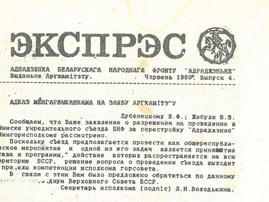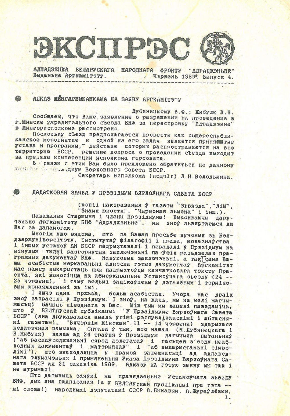 “Выданне аргкамітэту БНФ” – менавіта так пазначала сябе выданне, адно са старэйшых у маёй калекцыі: “Экспрэс” датаваны чэрвенем 1989 году і адзначаны як “Выпуск 4”. Шмат, шмат чаго пачалося менавіта ад яго.