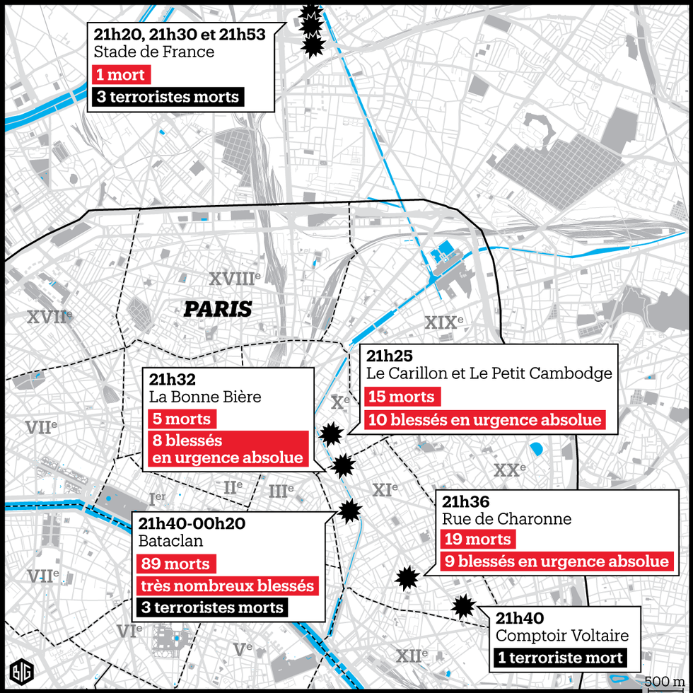 Liberation нарисовала карту событий ночи с 13 на 14 ноября