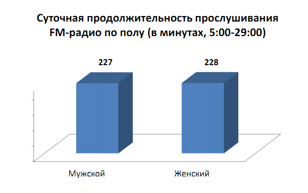 - Посмотри напоследок эти две диаграммы. Как видим, радио слушают в основном мужчины, но женщины слушают его чуть дольше. Почему такой расклад?