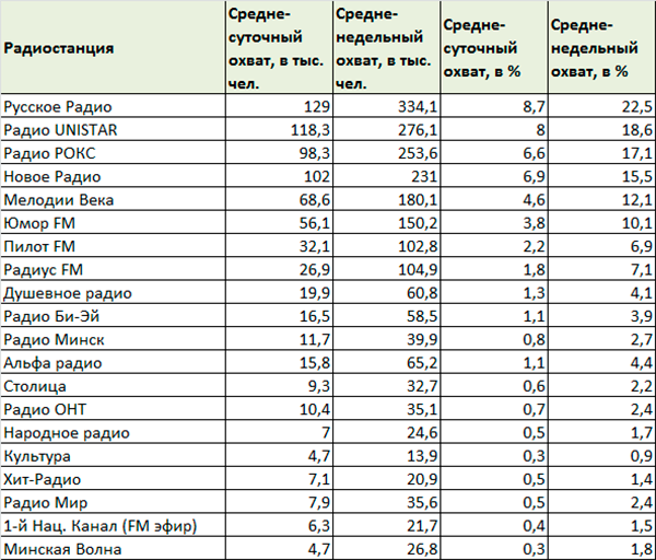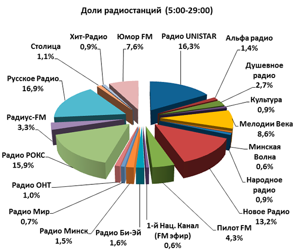 - Хорошо, давай посмотрим на список лидеров эфира. В первой тройке только одна станция по сути белорусская (UNISTAR), а две другие формально белорусские, но реально – русские. Это «Русское радио» и «Радио Рокс» с его шансоном. Почему так?