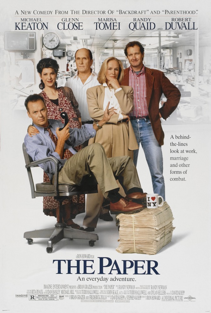 Как ни странно, жанр «производственная драма» или «производственный роман» зародился не в СССР, а в США – спасибо Артуру Хейли. Фильм «Газета» – классический пример такой производственной драмы. Это, скорее, смесь трагедии и комедии, подробно рассказывающая историю всего одних суток из жизни американской газеты с громким названием The Sun. Действие происходит в Нью-Йорке. Авторы фильма нарисовали великолепный коллективный портрет сотрудников редакции газеты, которые сдают очередной номер на фоне бесконечного решения множества личных и общественных проблем. За эти сутки они успевают по несколько раз переругаться, а потом помириться друг с другом: ведь на следующий день им придется начинать все сначала.