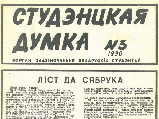 - У 1988 і 1989 годах “Студэнцкая думка” была больш культурна-асветніцкім выданнем. Тады ёю апекаваўся Ігар Міхно, які навучаўся ў Тэхналагічным інстытуце. Ігар Міхно і Алесь Гуркоў рабілі “Студэнцкую думку” як часопіс нацыянальна-арыентаванага студэнцтва. Але яны на той час ужо сканчалі навучанне. А я ў 1989-м толькі паступіў. І на фоне агульнага нацыянальнага ўздыму, перабудовы і галоснасці, мы сабраліся і стварылі Задзіночанне беларускіх студэнтаў. Тады тыя, хто ўжо адыходзілі са студэнцтва, і перадалі нам “Студэнцкую думку” у спадчыну.