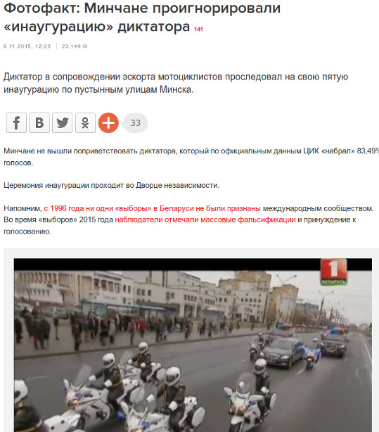 ПРИМЕР. Заметка Хартии'97 ''Фотофакт: Минчане проигнорировали «инаугурацию» диктатора''.