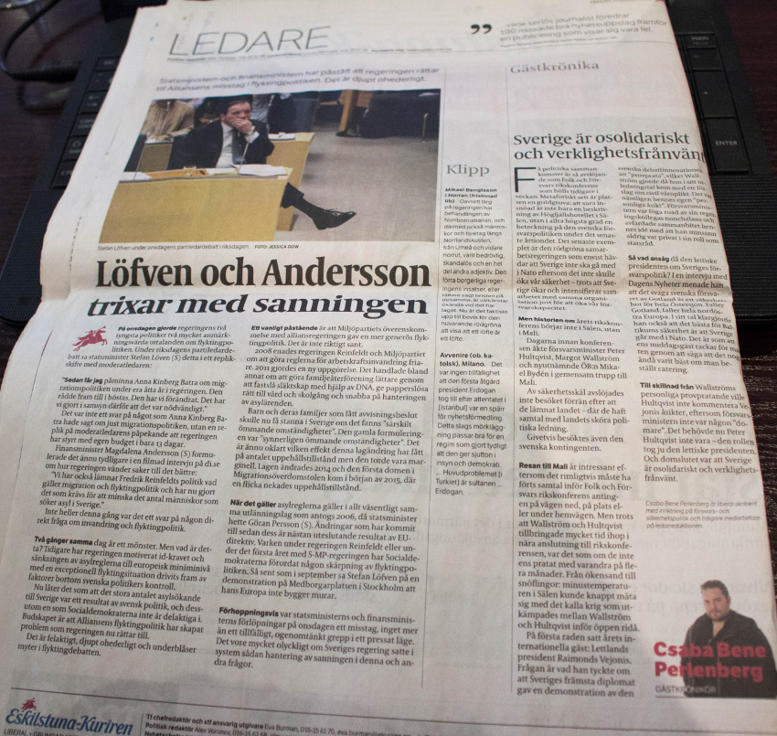 Я стараюсь, чтобы треть политических комментариев затрагивала региональный уровень. Конечно, большинство касается общешведских вопросов. И некоторая доля выпадает на международную политику.