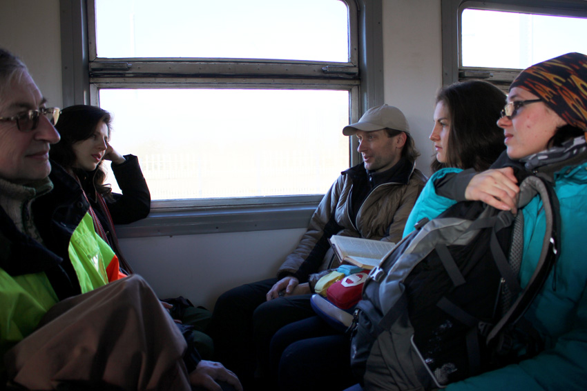 На часах 9.52. Центральный железнодорожный вокзал. Отправление электрички Минск-Молодечно. В вагонах многолюдно. В обговоренном заранее вагоне нахожу знакомое лицо. Рядом сидят незнакомые люди, но по туристским рюкзакам понимаю, что наша с ними конечная точка одна и та же.