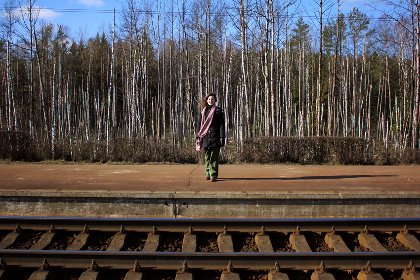 Через несколько десятков минут, подобрав по пути организатора проекта Елену Анкудо и перезнакомившись, выходим на станции Крыжовка. По одну сторону путей дачные дома, по другую топь, из которой торчат дряхлые деревья. Нас 11 человек.