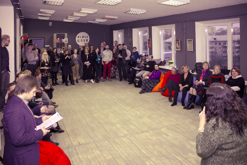 На мероприятие пришли десятки друзей, коллег и партнеров проекта. Первой слово взяла шеф Пресс-клуба Беларусь Юлия Слуцкая: