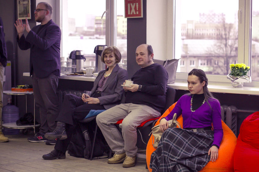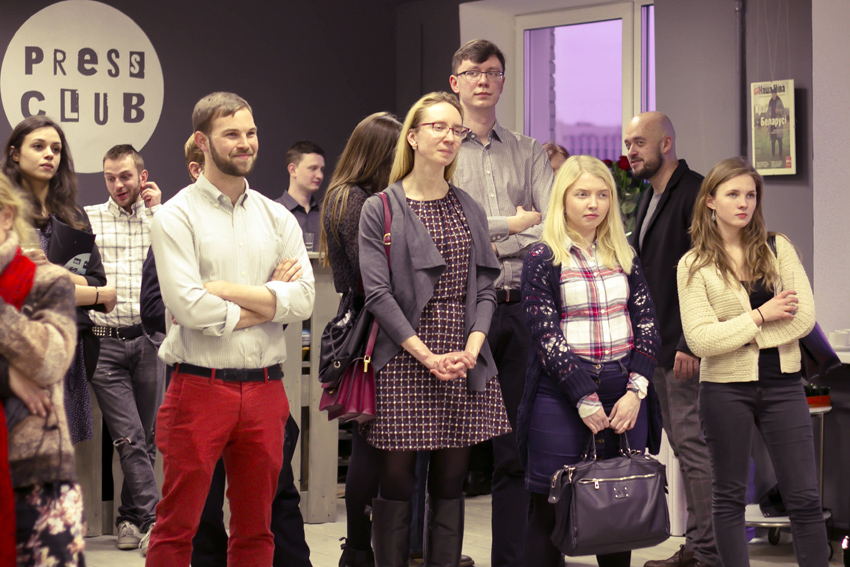 «Сегодня для меня очень волнительный день, потому что сегодня торжественное открытие того, что мы делаем уже давно. Мы делаем наш Пресс-клуб — место, куда можно приходить, площадку, где можно общаться друг с другом. По нашей задумке это площадка для профессионального роста белорусского медиа-сообщества. А начиналось все с понимания того, насколько мы изолированы от мира, насколько нам нужно эту изоляцию разрывать.