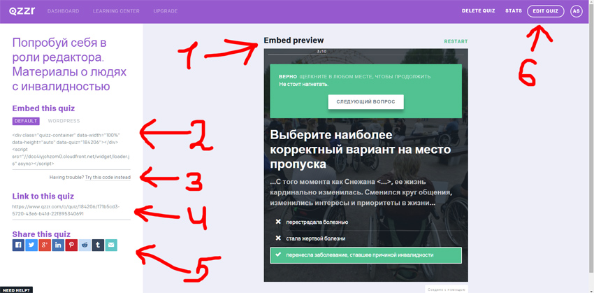 6. Ссылка на страницу редактирования теста. Если вы вдруг обнаружили ошибку на этом этапе и желаете ее исправить.