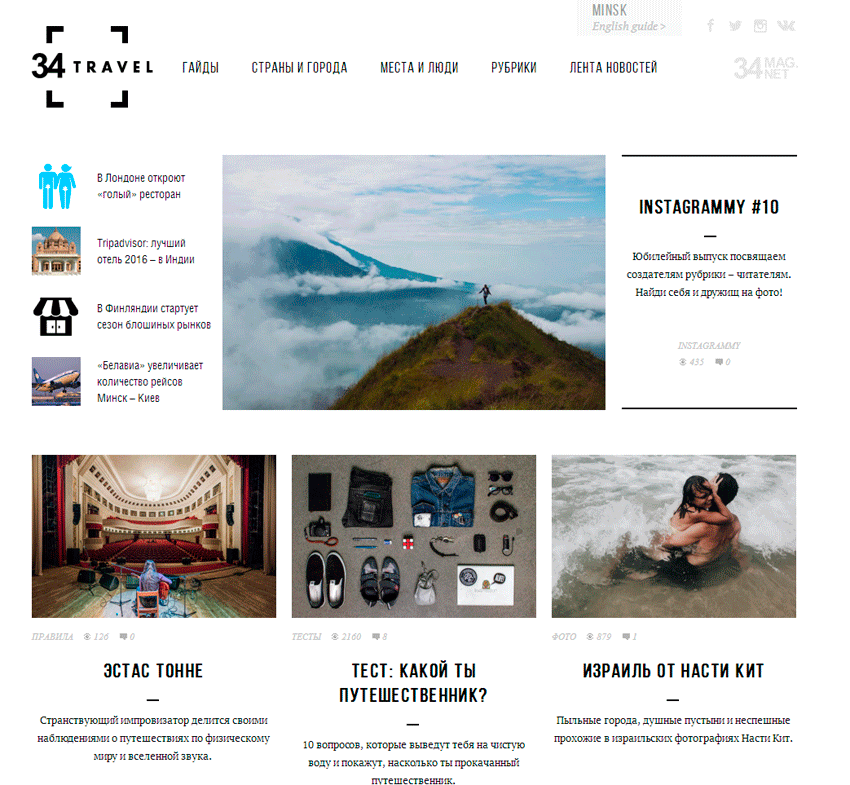 А проект 34travel – по сути своей на 90% нативная реклама. Тут читатель может найти и тесты, и лайфхаки, и тексты-обзоры туристических мест, за которыми стоят туристические кампании, авиаперевозчики, банки. И все это нисколько не обесценивает редакционную работу.
