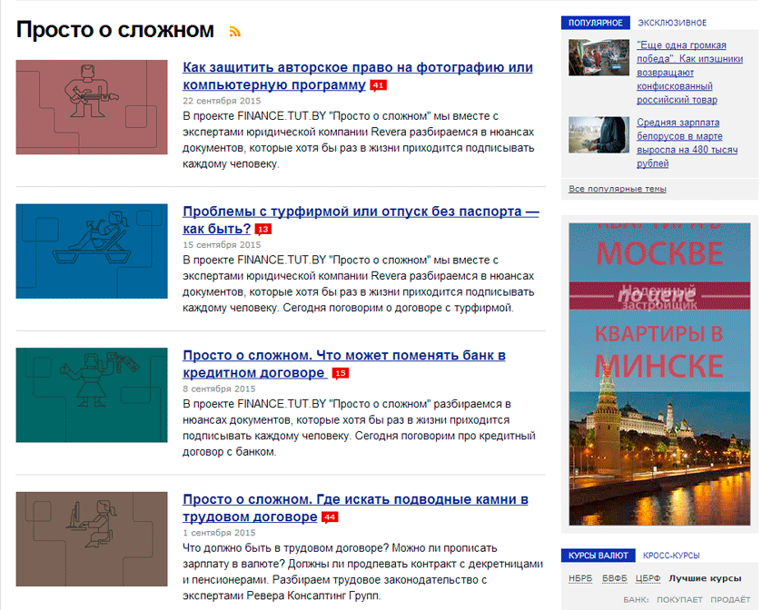 Например, Finance.TUT.by создал проект «Просто о сложном» создан в партнерстве с юридической фирмой для просвещения аудитории в тонкостях белорусского законодательства.