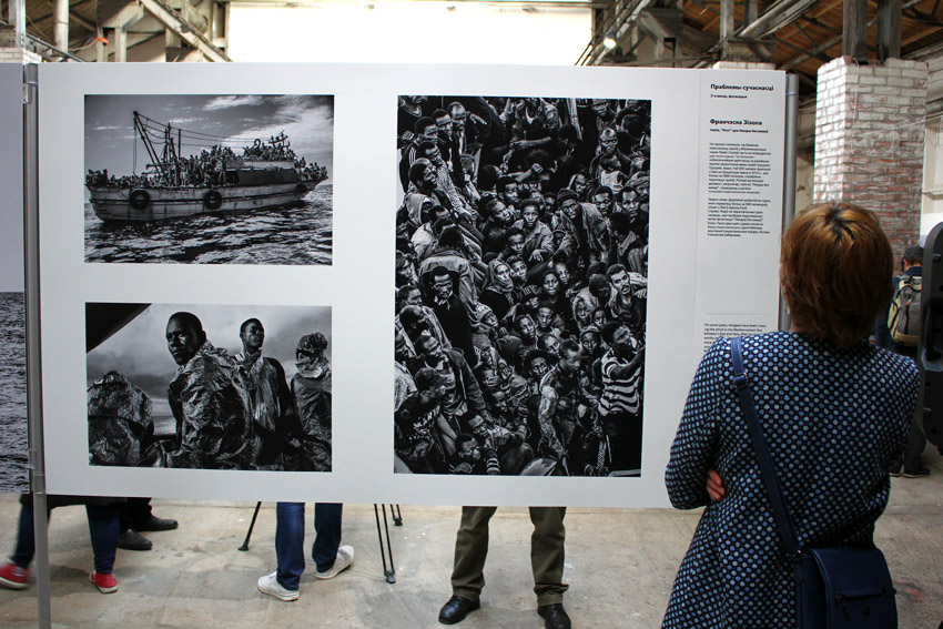 «Фактически, лейтмотивом выставки является эмигрантский кризис в Европе, - рассказал журналистам куратор выставки Лоуренс Кертвег. - Вы можете увидеть здесь, так сказать, полный цикл эмигрантской проблемы. От начала где-нибудь в Сирии до тех мест в Европе, куда эмигранты пребывают и живут».