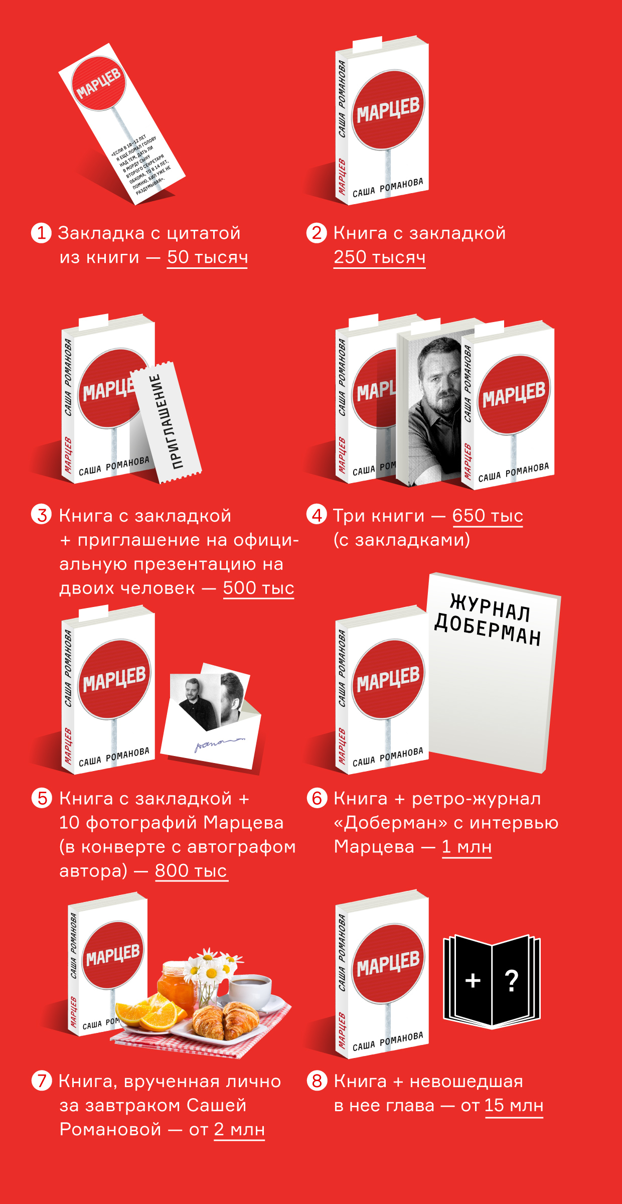 В 2009 году Саша, которую только что уволили из «Добермана», совместно с Петром задумала написать провокационную и честную книгу о бизнесмене. Без купюр и с крепким словцом. Саша начала два-три раза в неделю приходить в офис Марцева с диктофоном. Он рассказывал молодой журналистке про «лихие 90-е», работу в вечерней школе и закулисье журналистской и политической жизни.