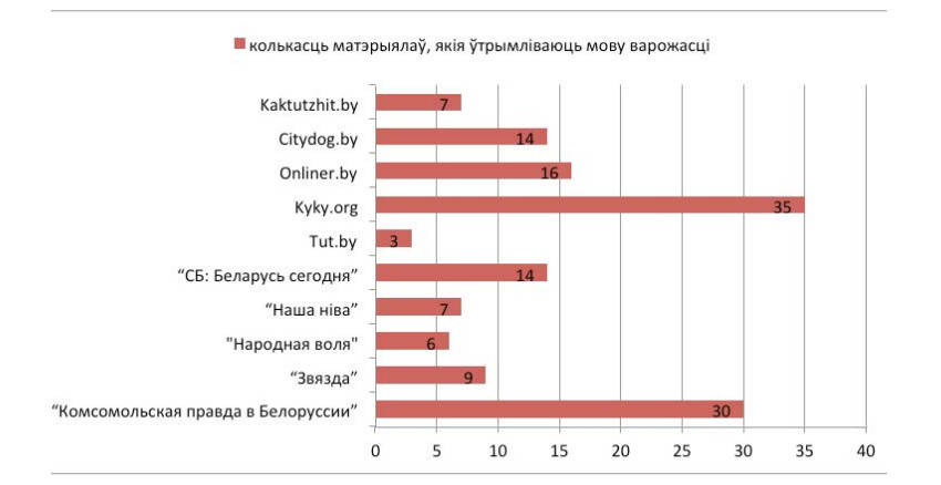 Эксперты проанализировали публикации, увидевшие свет в период с января по март 2016 года, в следующих изданиях: «СБ: Беларусь сегодня», «Комсомольская правда» в Белоруссии», «Звязда», «Народная воля», «Наша ніва» и интернет-изданий Tut.by, Kyky.org, Onliner.by, Citydog.by, Kaktutzhit.by. Полную версию масштабного исследования можно найти здесь.