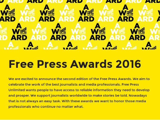 Нидерландская некоммерческая организация Free Press Unlimited вручает награды Free Press Awards.