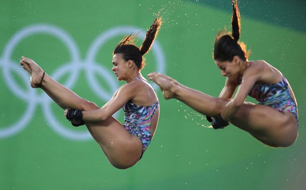Бразильянки Ингрид Оливейра и Джованна Педросо тренируются перед финалов в синхронных прыжках с высоты 10 метров
