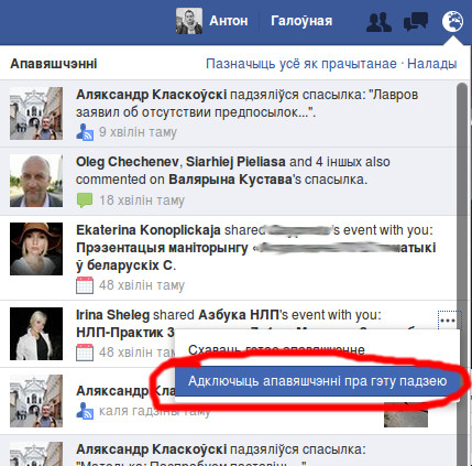 Конечно, можно попробовать запретить пользователям приглашать вас на события. Но риск пропустить что-нибудь интересное слишком велик. Поэтому лучше планомерно отказываться от неинтересующих мероприятий и страниц. В стационарной версии Facebook проще всего сделать это прямо в окне уведомлений: «Отключить уведомления об этом событии».