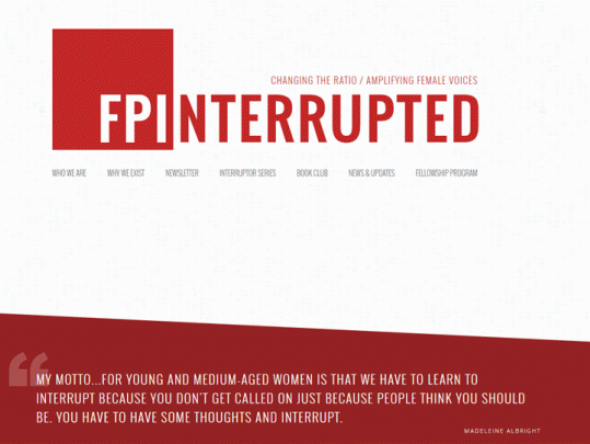 Стипендиальная программа Foreign Policy Interrupted поддерживает разнообразие голосов и мнений по вопросам внешней политики. Работа программы включает тренинги в сфере медиа и консультативную помощь в партнерских медиаорганизациях.