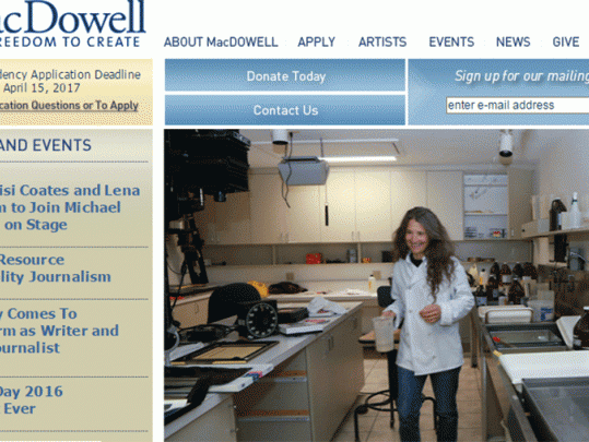 Организация "Колония Макдауэлл" в рамках своей резидентской программы принимает заявки от журналистов, работающих над объемными проектами. Программа дает выбранным кандидатам возможность жить в знаменитом сообществе художников и работать над творческими проектами. Сроки проживания – от двух до восьми недель. Следующая программа будет проходить с 1 октября 2017 по 31 января 2018 года.