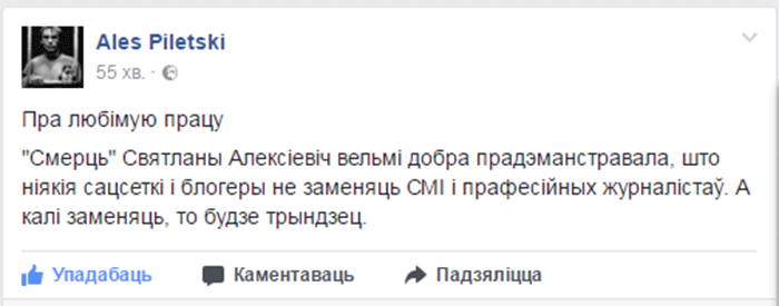 «Смерть и воскрешение» Алексиевич стали своеобразным тестом на профессиональную пригодность журналистов, посчитали пользователи социальных сетей. Многие из которых - сами представители СМИ.
