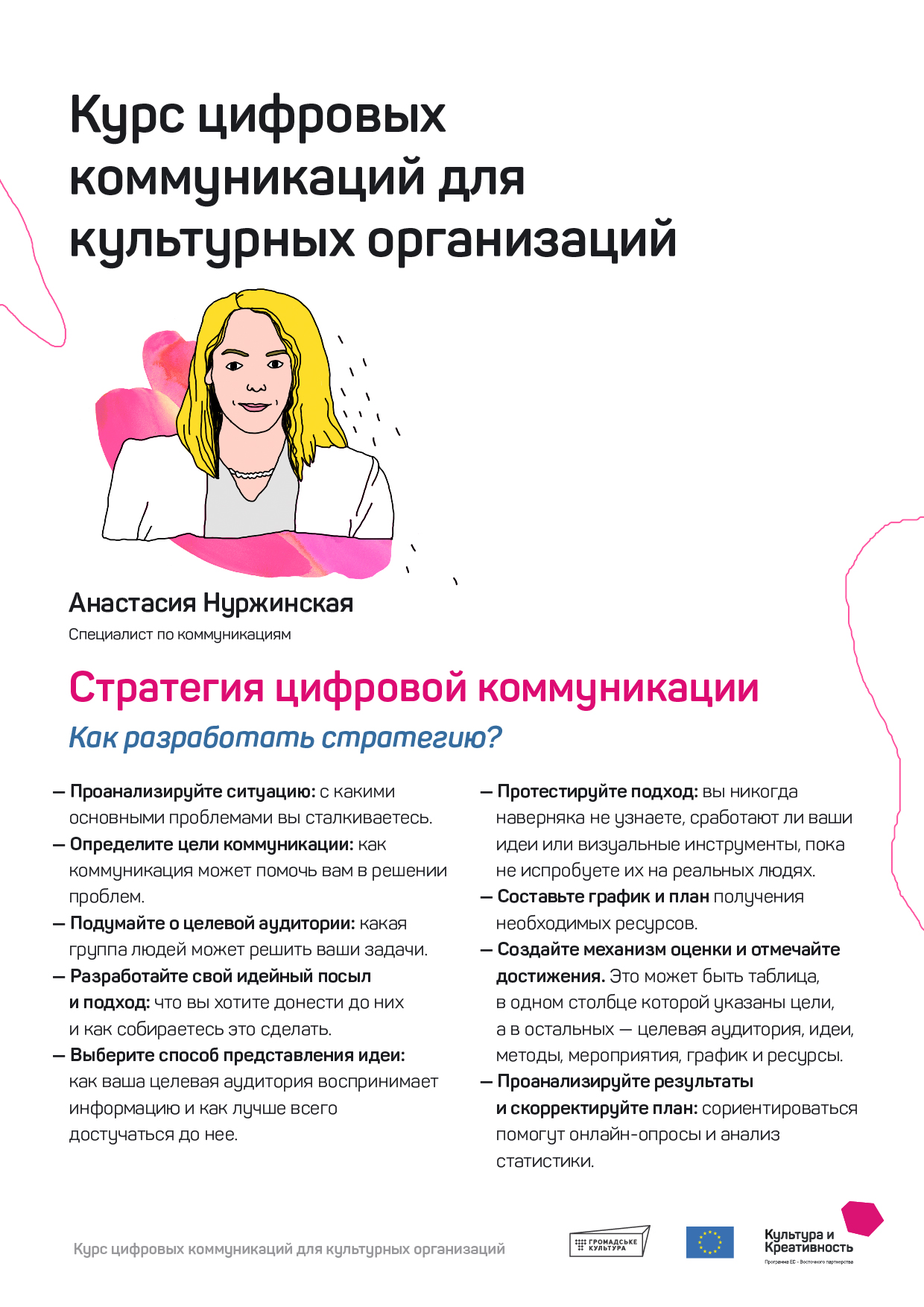 «Важно чтобы коммуникационная стратегия была частью общей стратегии организации. Поэтому я рекомендую подключить к разработке как можно больше сотрудников», - советует автор курса Анастасия Нуржинская.