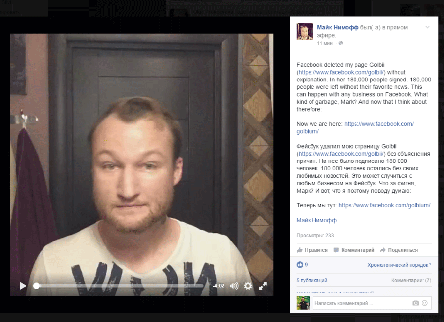 Блокировка может задеть и профиль, и группу, и страницу. Удаляют и блокируют иногда даже за самые невинные, казалось бы, посты и комментарии (в конце статьи будет яркий рассказ потерпевшего о том, за что его заблокировали, и как выйти из бана). При этом срок давности не имеет значения. В сети есть масса воплей о помощи и обид на Facebook за удаление и блокировку аккаунтов за посты и комментарии, которым было уже пару лет на момент жалобы.