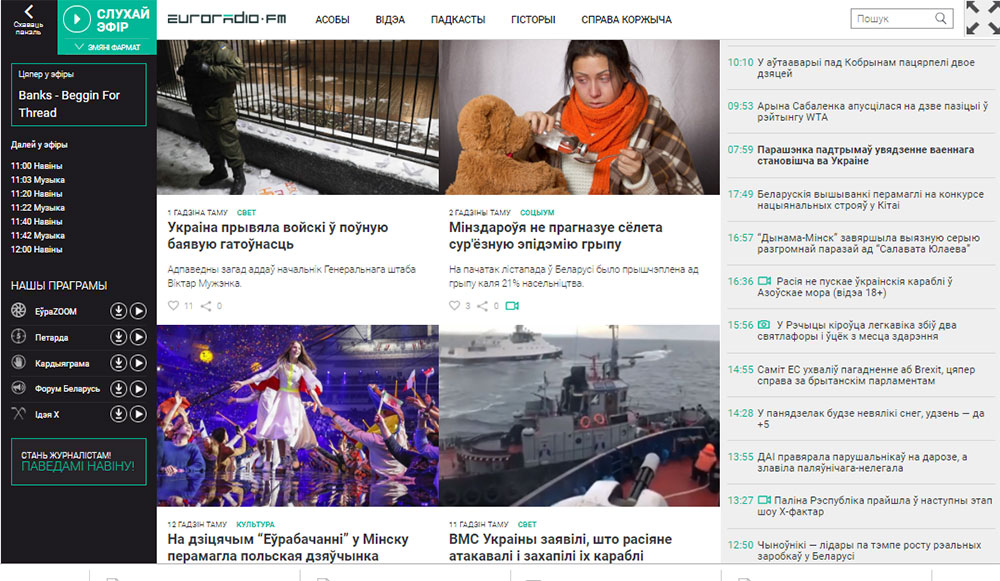 Две новости, связанные с инцидентом в Керченском проливе попали на главный экран «Еврорадио» утром в понедельник.