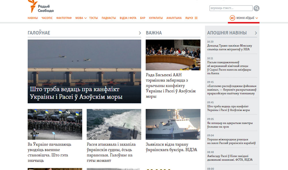 Весь первый экран сайта «Радио Свобода» посвящен Керчи, захвату кораблей, реакции Украины, России, ООН.