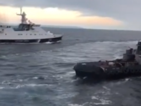 Россия и Украина обвиняют друг друга в провокации. Киев утверждает, что два бронированных катера и буксир шли из Одессы в Мариуполь через Керченский пролив и заранее предупредили об этом россиян, а Москва говорит, что украинцы нарушили границу.