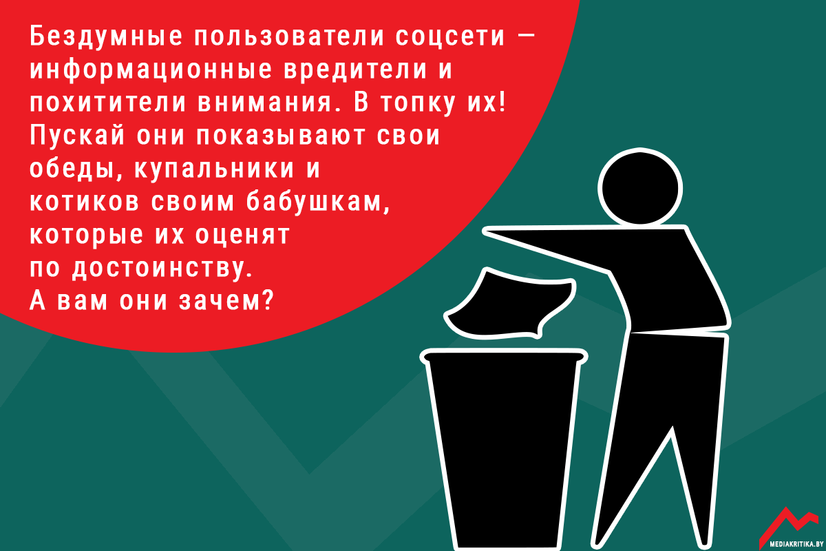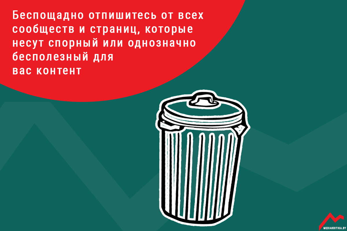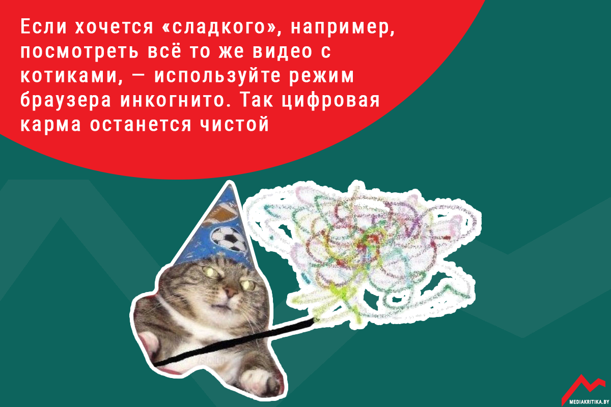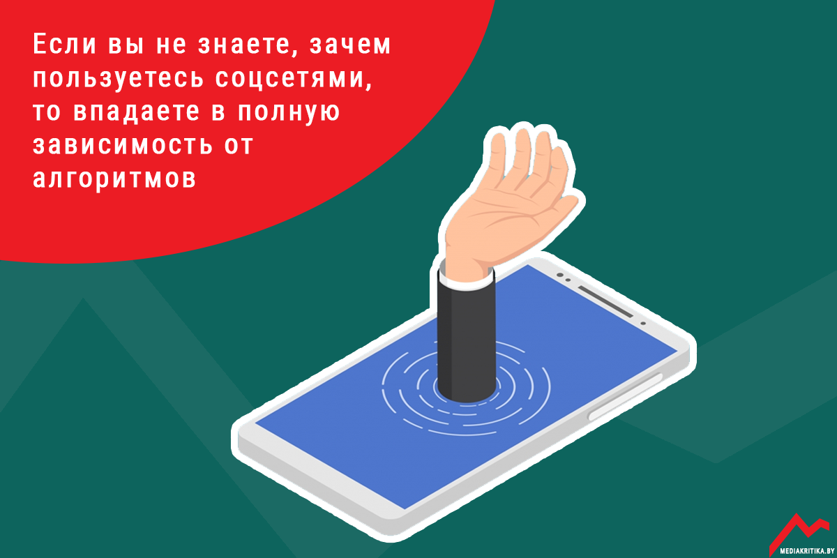 Mediakritika.by дает советы по цифровой гигиене в картинках. Их можно сохранять на память, пересылать друзьям и знакомым, делиться в социальных сетях. И помнить, что если мы сами не возьмем контроль за своим поведением в соцсетях, за нас это сделает искусственный интеллект и алгоритмы, придуманные другими.
