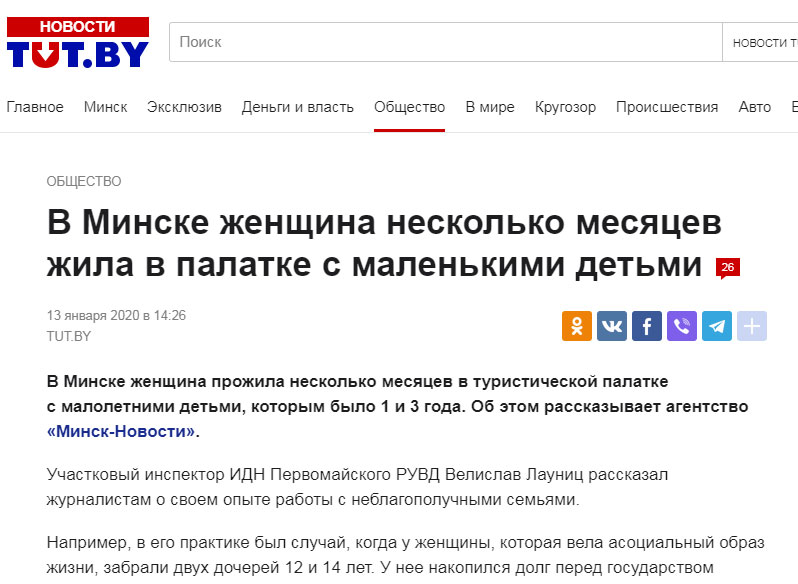 На календаре - январь 2020 года. А социальных сетях проскальзывает новость - в Минске женщина с маленькими детьми несколько месяцев жила палатке. Не кликнуть на такой заголовок - почти не возможно.