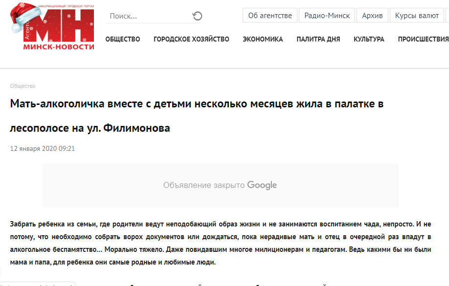 Идем по ссылке на собственно материал на портале TUT.by и узнаем, что женщина жила в лесу около улицы Филимонова, а ее детям было один и три года соответственно. Правда случилось это не зимой и не осенью, и даже не летом прошлого года, а... когда-то.