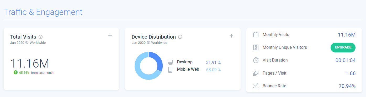 Из них лишь 17.09% из Беларуси (данные для десктопов). В чистой цифре получается около 1.9 млн. визитов беларусских пользователей.