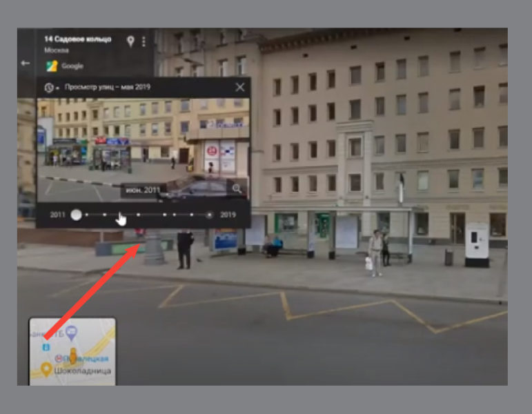 С помощью инструмента Google Street View (просмотр улиц) на картах Google maps можно, не выходя из дома, посмотреть, как выглядят здания, находящиеся по тому или иному адресу. В некоторых локациях есть также возможность просмотреть исторические снимки этого места, сделанные в разные года и даты (на картах Yandex тоже есть такая опция). Благодаря тому, что меняются вывески магазинов, рекламные баннеры, и другие элементы, можно с большей или меньшей точностью определить не только место, но и время съемки интересующего нас фото или видео. (Пример такого анализа фотографии можно найти у расследователей Bellingcat).