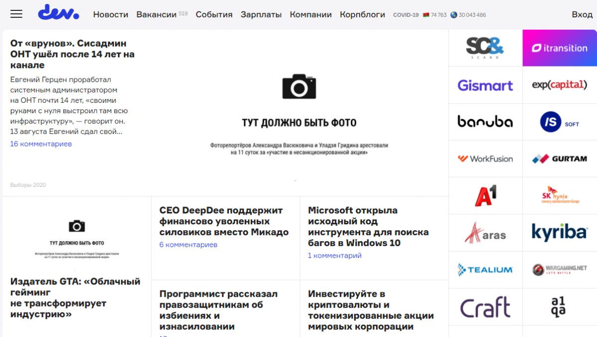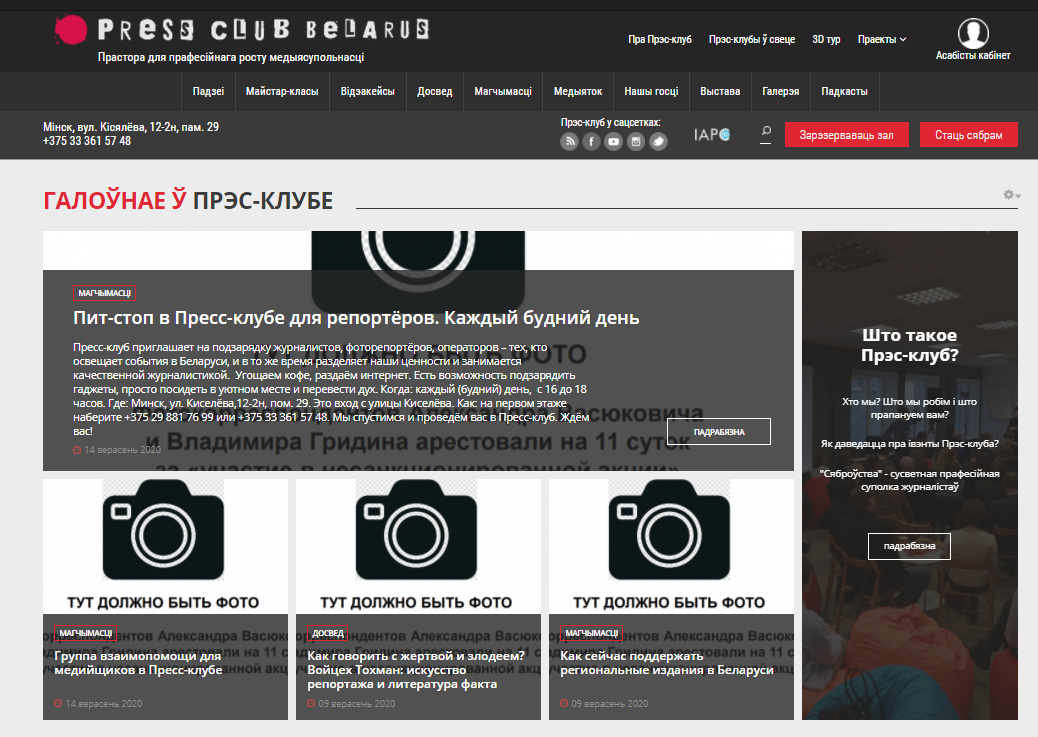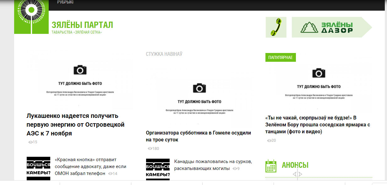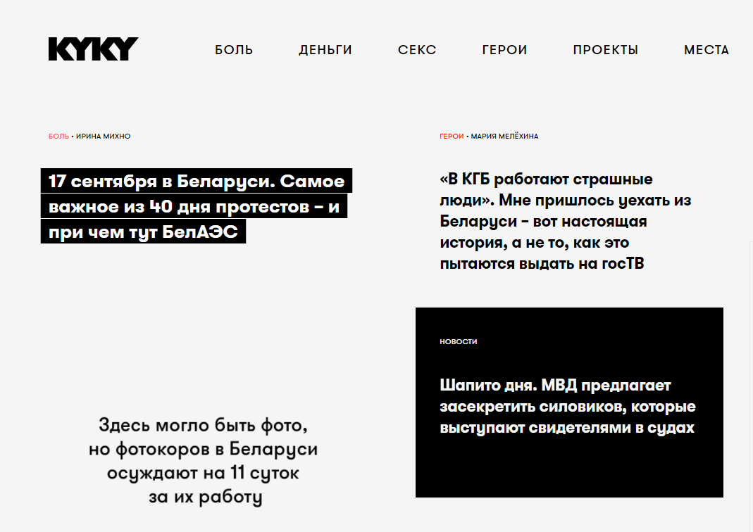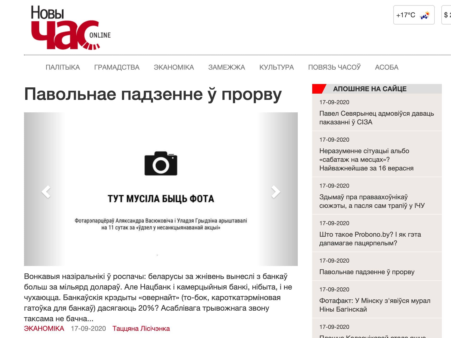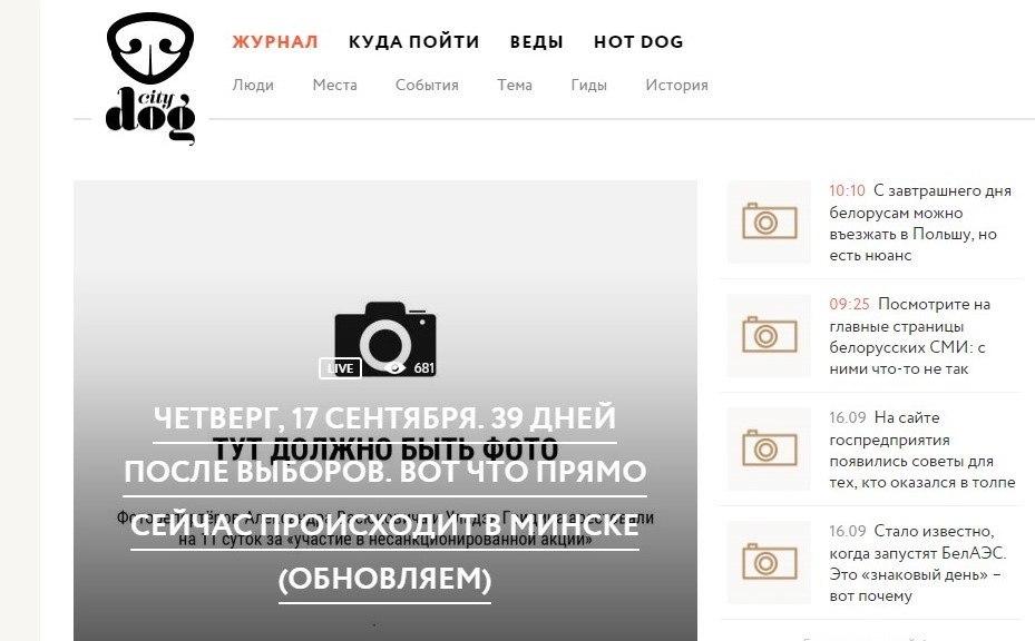 В четверг, 17 сентября, большинство крупных независимых медиа Беларуси, отказались от использования фото на главных страницах своих изданий в знак поддержки фотожурналистов Уладзя Гридина, Александра Васюковича и Марины Дробышевской, которые получили по 10-11 суток административного ареста за якобы "участие в несакнционированном мероприятии".