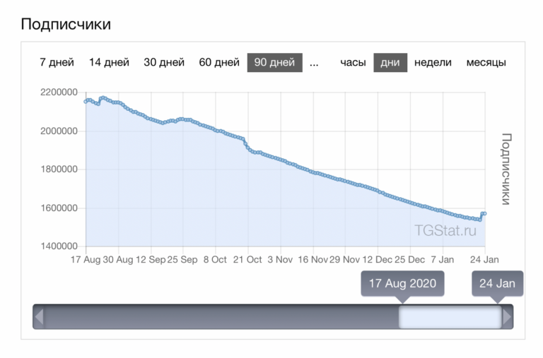 Но набрав аудиторию, проекту пока не удается ее удержать – количество подписчиков сократилось с 2,165 млн до 1,539 млн. Усталость аудитории, и жёсткая, на грани хейтспича, риторика, вместе со слабостью фактчека привели к массовому оттоку пользователей.