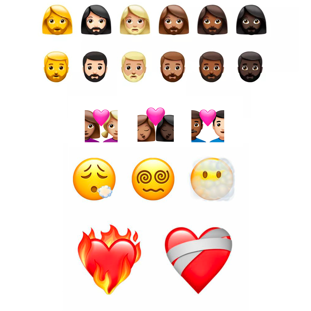 - дополнительные варианты для эмодзи «Человек с бородой» и «Пара с сердечком»;