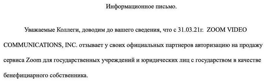 Госорганы и госкомпании России останутся без полноценных версий всемирно известного сервиса видеоконференций Zoom. Российским партнерам разработчика данного продукта с 31 марта 2021 г. запрещено продавать его лицензии в госсектор.