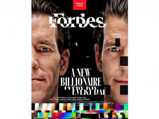 Цифровое искусство с участием Кэмерона Винклвосса и Тайлера Винклвосса под названием «Торговцы Метавселенной» будет продано на ограниченном 24-часовом аукционе. Доходы от продажи Forbes пожертвует Комитету защиты журналистов (CPJ) и Международному фонду женских СМИ (IWMF).